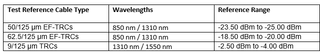 If your reference values fail to meet the expected power stated below, you should inspect the output ports as well as your test reference cords using a video microscope such as the FI-1000; an optional probe for your CertiFiber Pro.